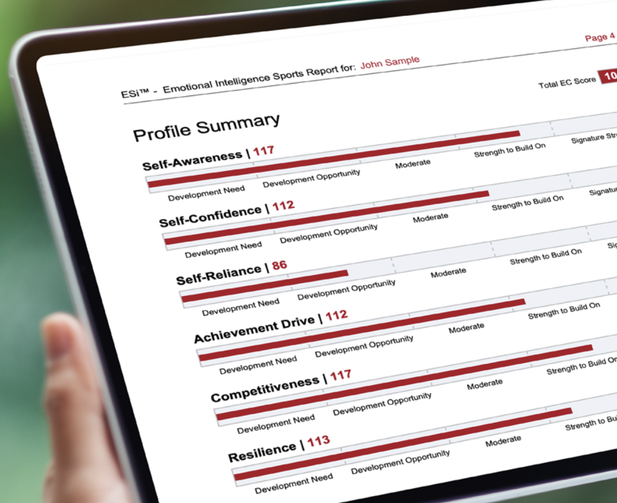 The ESi is a concise and user-friendly assessment that can be completed online in just 10 minutes. It generates a comprehensive report on an individual's sports performance potential, grounded in their Emotional Intelligence.